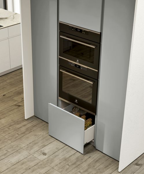 Nessun centimetro è sprecato: dalla dispensa ai vani per gli elettrodomestici nascosti, la colonna-monolite è molto più di un semplice pezzo d’arredamento. È una cucina nella cucina, con il grande vantaggio che, una volta chiuse le ante, tutto appare perfettamente in ordine. La semplicità e l’organizzazione si fondono per offrirti un ambiente dove vivere e lavorare diventano un piacere.