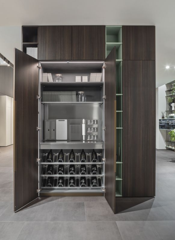 Questo elemento di design, essenziale e contemporaneo, racchiude tutto ciò che serve per rendere la cucina efficiente, elegante e ordinata.