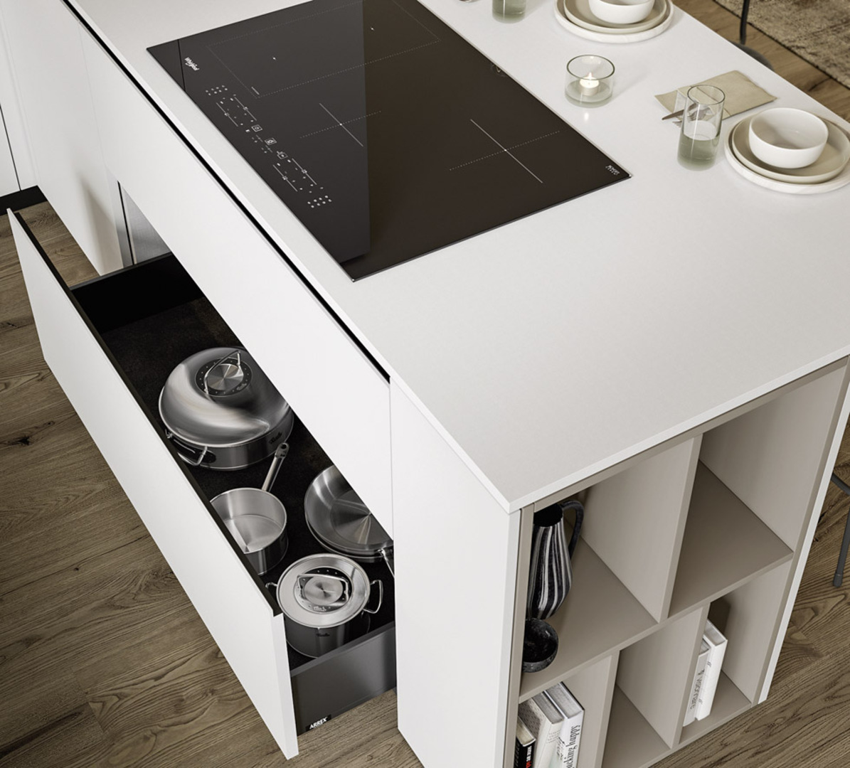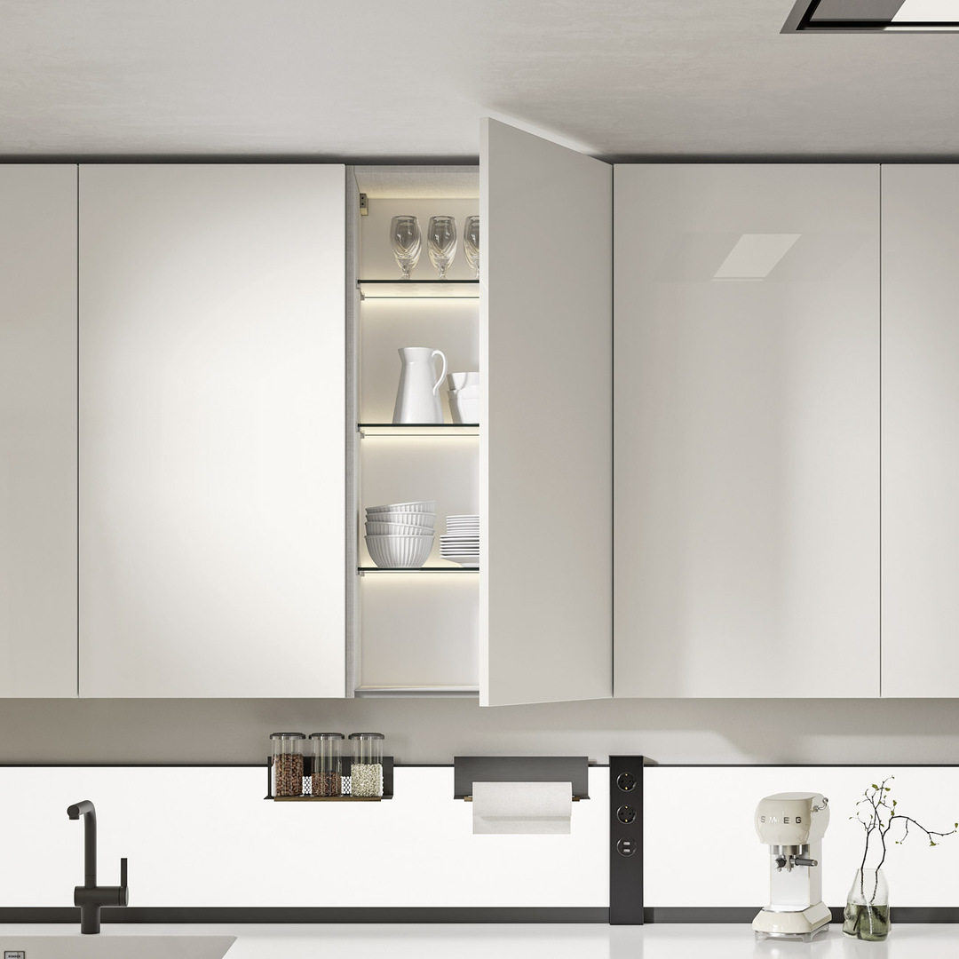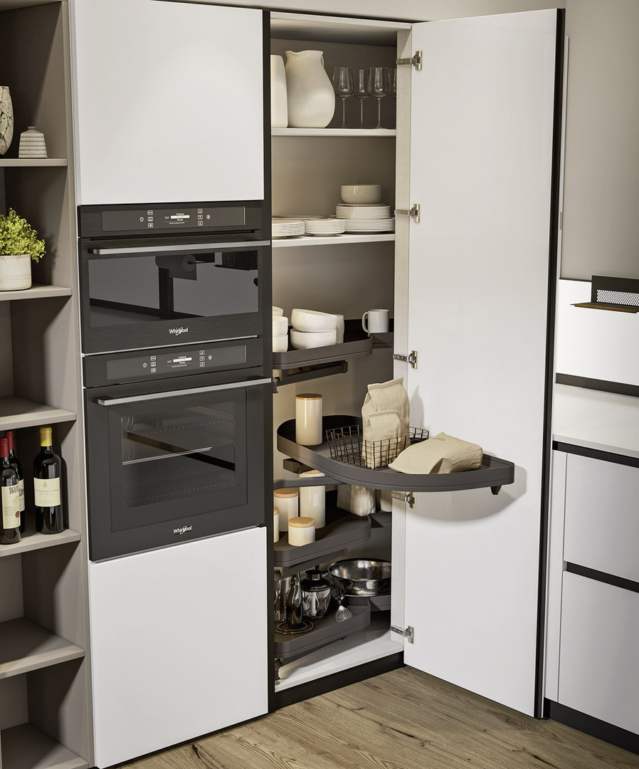 Sistemi di apertura caratterizzati da movimenti fluidi ed ergonomici e dotati di accessori integrati che permettono una gestione razionale e organizzata dello spazio interno.