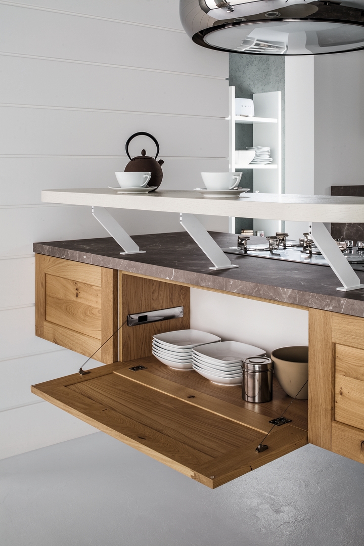 Volutamente asimmetrica, la cucina di questo progetto si estende su due linee parallele, conferendo profondità all'intero ambiente. Una soluzione che inizia con la geometria, ma si sviluppa con la creatività.